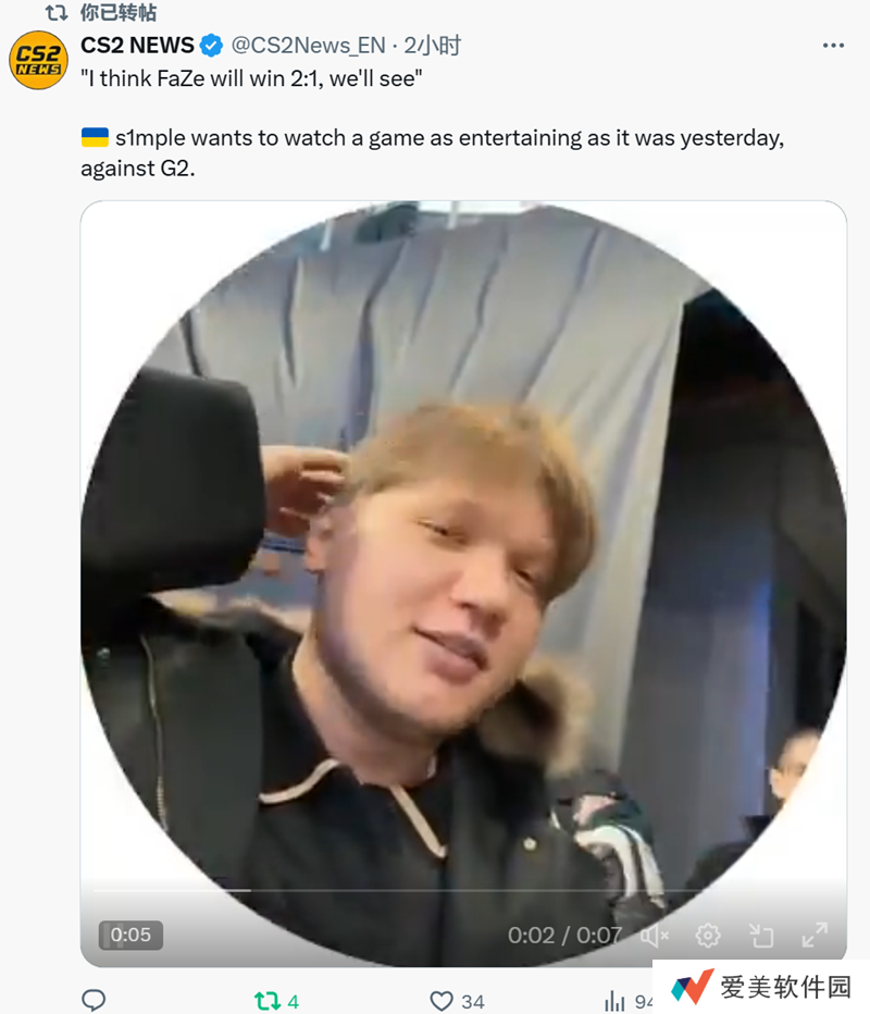 同时s1mple表示希望看到一场像昨天FaZe和
