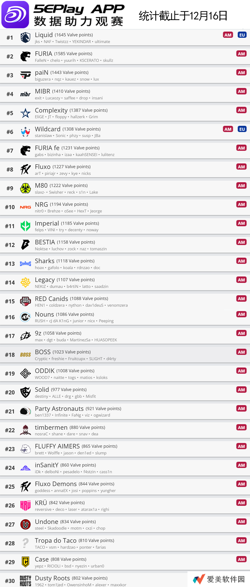 美洲区前30名如下: