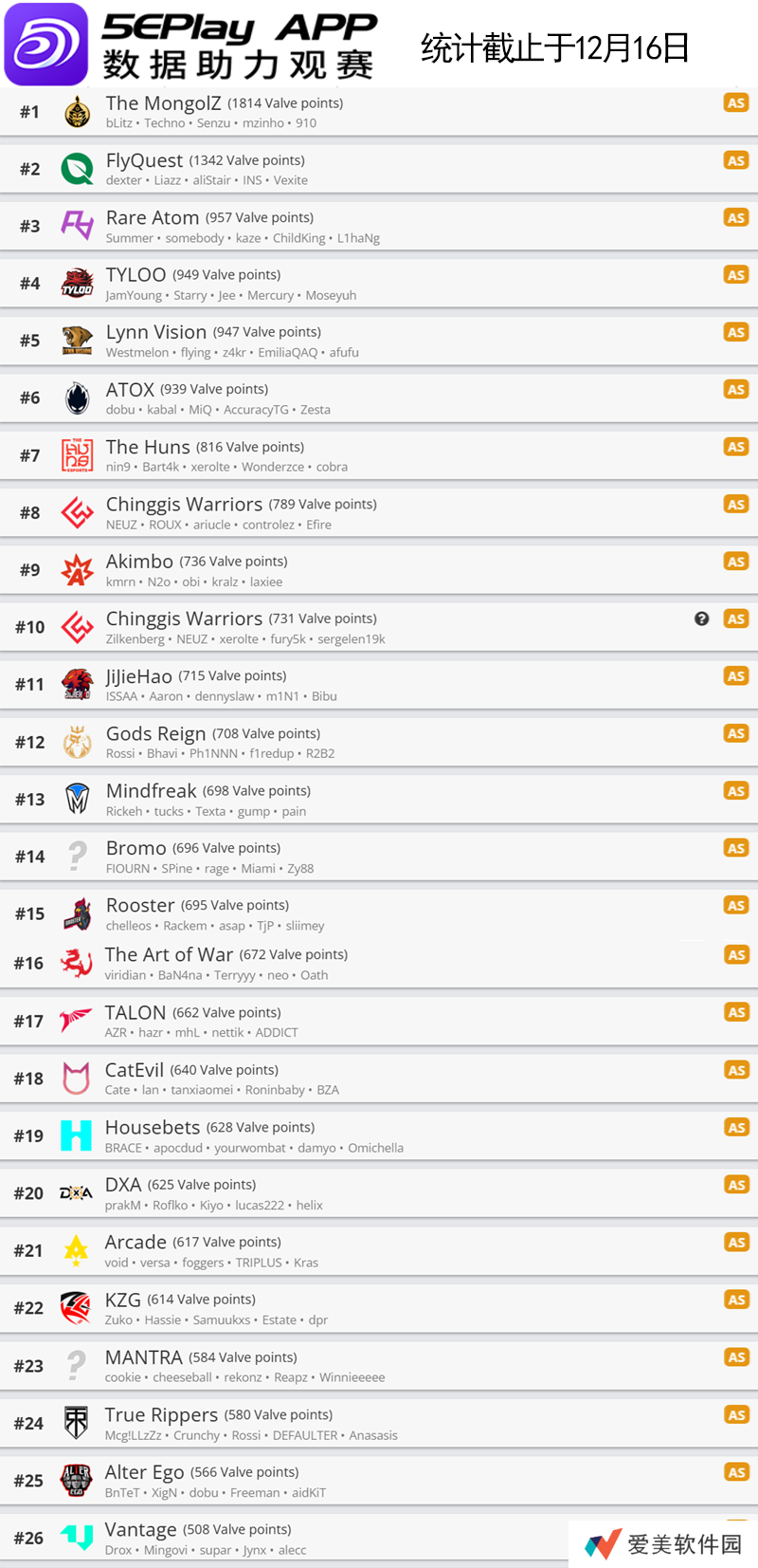今天V社更新了旗下CS世界排名,这一世界排名会和明年的赛事邀请紧密联系,因此是主办方和战队都必须关注的内容。