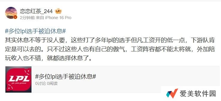 直播吧12月17日讯 2024LPL冬季转会期结束,多位LPL选手选择休息,对此LPL知名爆料人发文点评:这些人也有自己的傲气,工资阵容都不能太将就,外加陪玩收入也不错,就都选择休息了。
