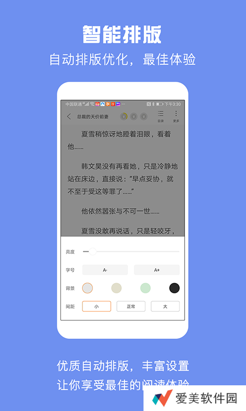 优秀阅读体验,护眼模式、仿真等多翻页效果、文字大小调节、变换阅读背景、阅读亮度调整、批量下载、进度跳转、目录书签