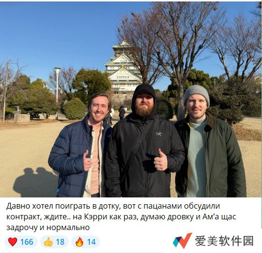 新科CS冠军指挥、Team Spirit选手chopper在个人电报频道分享了一张与Dota2选手CCNC以及Cr1t在日本的合影并配文称"其实我想打刀塔已经很久了,于是我和身边的这两位聊了聊合同,等下.... 让我打carry?我只会玩小黑和敌法可以吗???"
