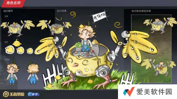 接下来我们再来看刘禅的第二个设计图,这款皮肤名为甜品派对,刘禅的模型是以黄色为主色调,刘禅的坐骑是玩偶形态的,肚子上面还有小熊的样子,看着特别的可爱。
