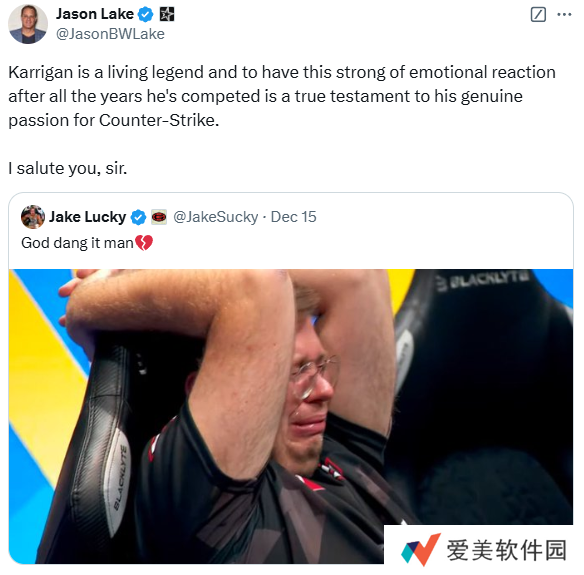 “karrigan是一个活着的传奇,在参加了这么多年的比赛之后,还能有如此强烈的情绪反应,这是他对CS无比热爱的最好证明。