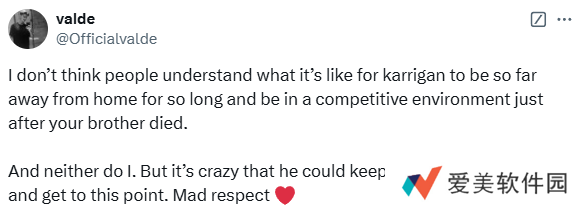 TSM战队选手valde也表达了对同胞选手karrigan的支持。