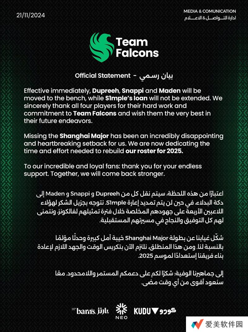 Mohammad Malhas | BOROS被队伍下放。原因在于Falcons冲击PGL 哥本哈根Major失败。