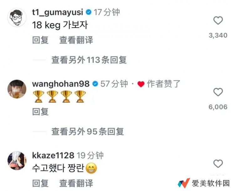 直播吧11月20日讯T1官宣Doran选手加入战队,Doran选手更新ins后,众选手纷纷为其评论,具体内容如下: