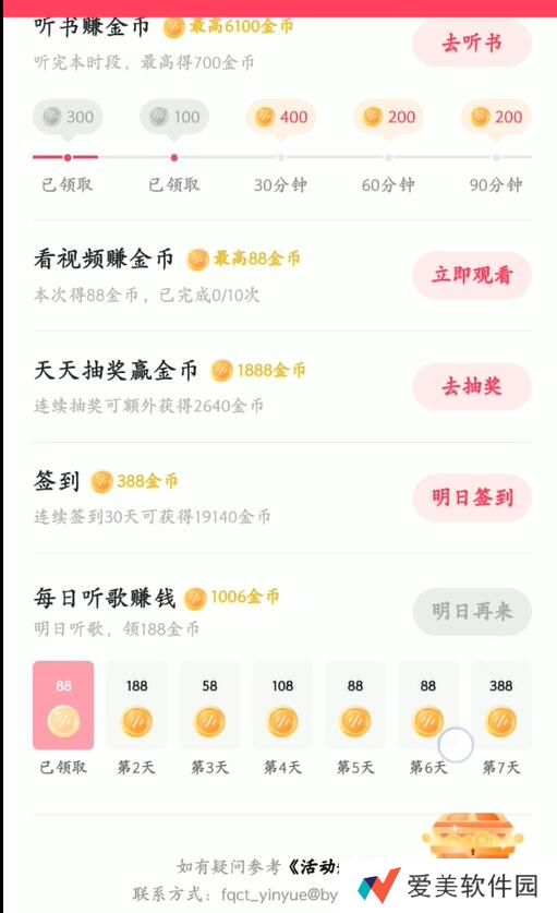 4、每天听歌最高能够获得7800金币,能够兑换的现金少的可怜,平均一天赚4毛钱。