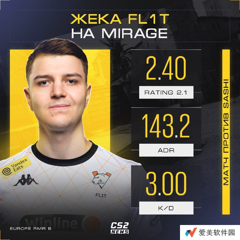 Sashi战队顺利晋级上海Major。本场比赛VP队内步枪手FL1T在决胜图Mirage上打出24-8 K-D,143.2 ADR和2.40 rating的惊人数据,助力队伍取得胜利。