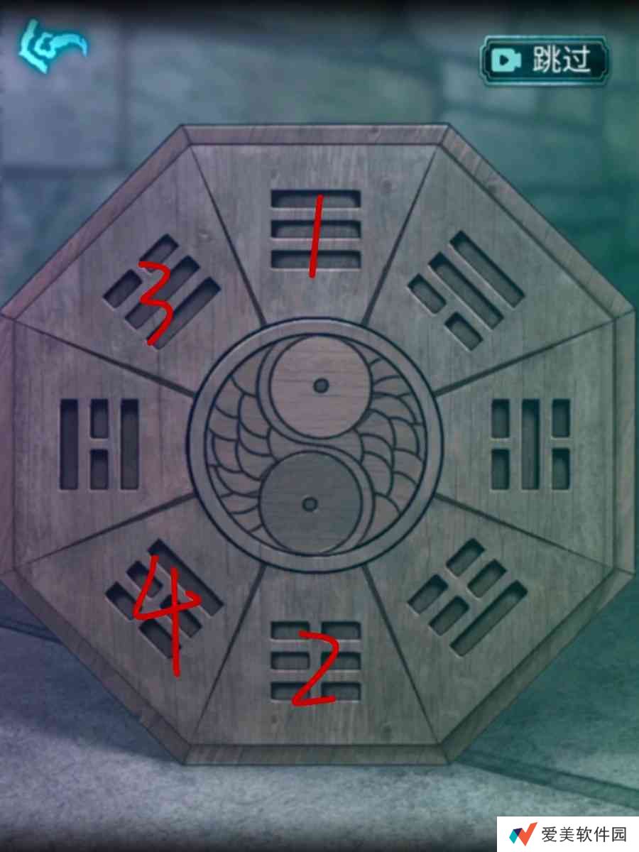 5、敲响右边的鼓,然后使用刀片划开鼓面,你会得到一把钥匙。使用钥匙打开地上的暗室,使用绳子下去,你会找到一张画和一个签筒。摇动签筒,你会在卦签上找到一个线索。6、根据画调整左边墙上的画框,打开机关,进入洞里,在墙角找到一把宝剑。在桌上的书本和牌位上找到线索,根据中间牌位上的字调整桌子下的盒子,你会得到一瓶粘合剂。根据书本的线索点击地上的机关,打开右边墙上的暗格,你会得到一个空瓶。