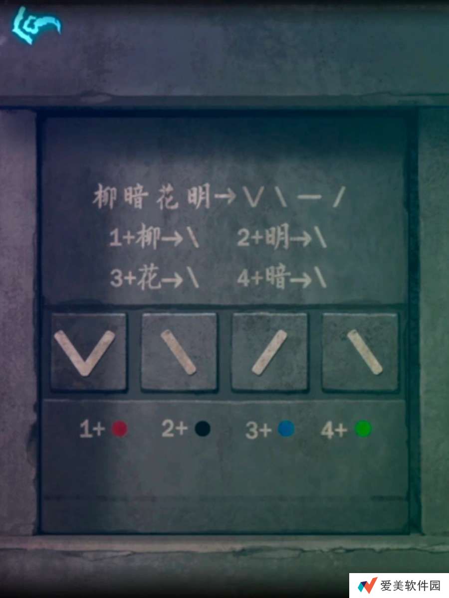 3、在侧门里,你在凳子上找到了一个把手,在桌子下找到了一盒火柴,在桌子上找到了一支毛笔。你将把手放在左边柜子的抽屉上,拉开抽屉,发现里面有一根蜡烛和一把刮刀。你将蜡烛和火柴组合在一起,点燃了蜡烛,然后回到了院子。4、你往右走了两次,来到了井边。你用刮刀刮下了石头上的朱砂,并获得了一条提示。你完成了左下方小盒子上的游戏,获得了一枚铜币。然后你回到了左边,根据窗户上的线索,将铜币放在门边的佛像前,获得了一张符纸。5、回到左边的厢房,你将朱砂放在石臼里捣碎,然后用毛笔蘸水和朱砂,画了一个符咒。你将符咒贴在棺材上,将蜡烛放在右边的烛台上,打开了棺材,获得了一个梅花镶嵌物。然后你回到了正房门口,用梅花打开了大门,进入了幻像。6、在幻像中,你在椅子上找到了半个镶嵌物,在窗户上找到了一些线索。你进入了正厅,在桌子上找到了一张卡纸,上面有两个线索。你打开了地上的机关,获得了一个五角星。你用五角星打开了左边椅子上的盒子,获得了一把钥匙。然后你回到了院子。