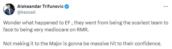 BLEED战队教练kassad在个人社交媒体上分享了对这支世界排名第八队伍的看法。