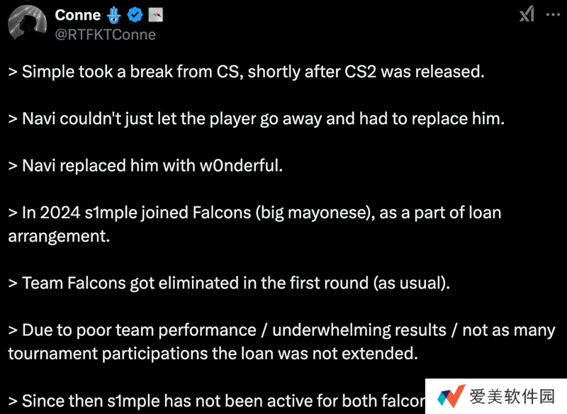 > 从那之后,s1mple就没有在Falcons和NAVI战队阵容中活跃了。”