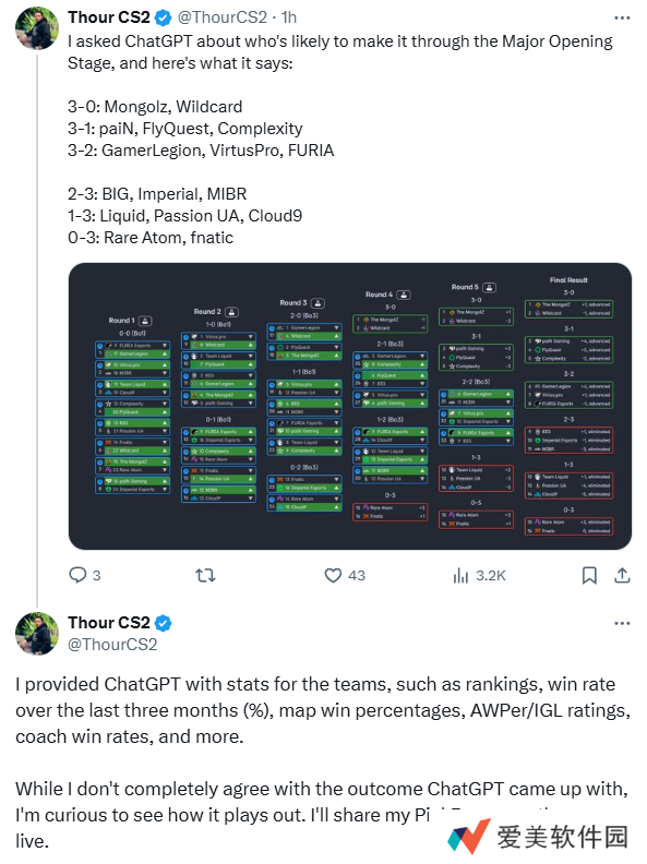 “我向ChatGPT询问了谁有可能通过Major开幕式阶段,结果如下: