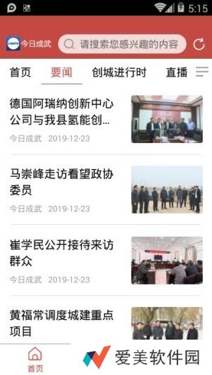 今日成武功能首页:要闻、创城进行时、直播