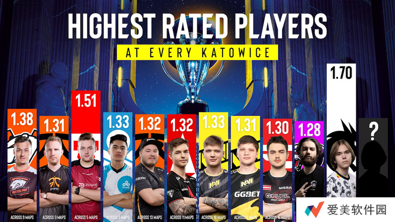 MOUZ战队的尼公子打出1.51 rating。而他们二人是榜单中唯二rating超过1.50的选手。