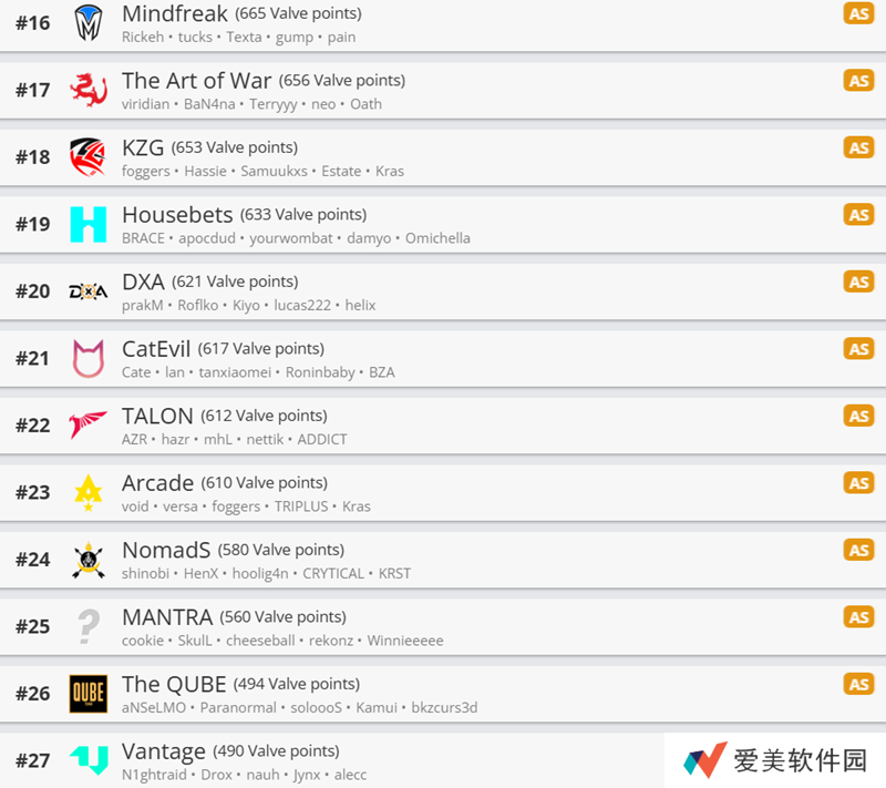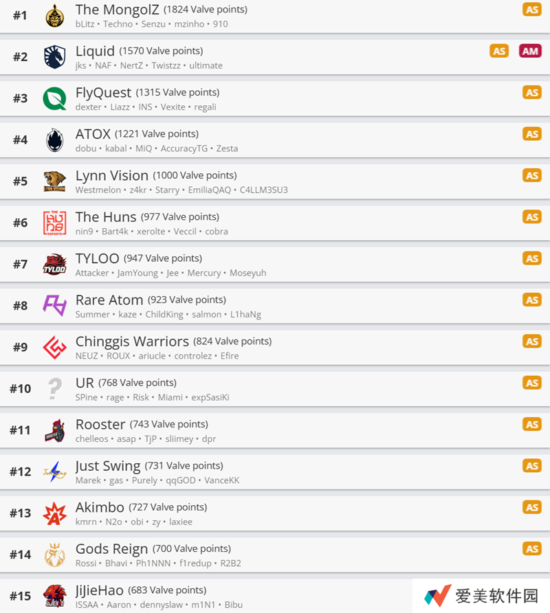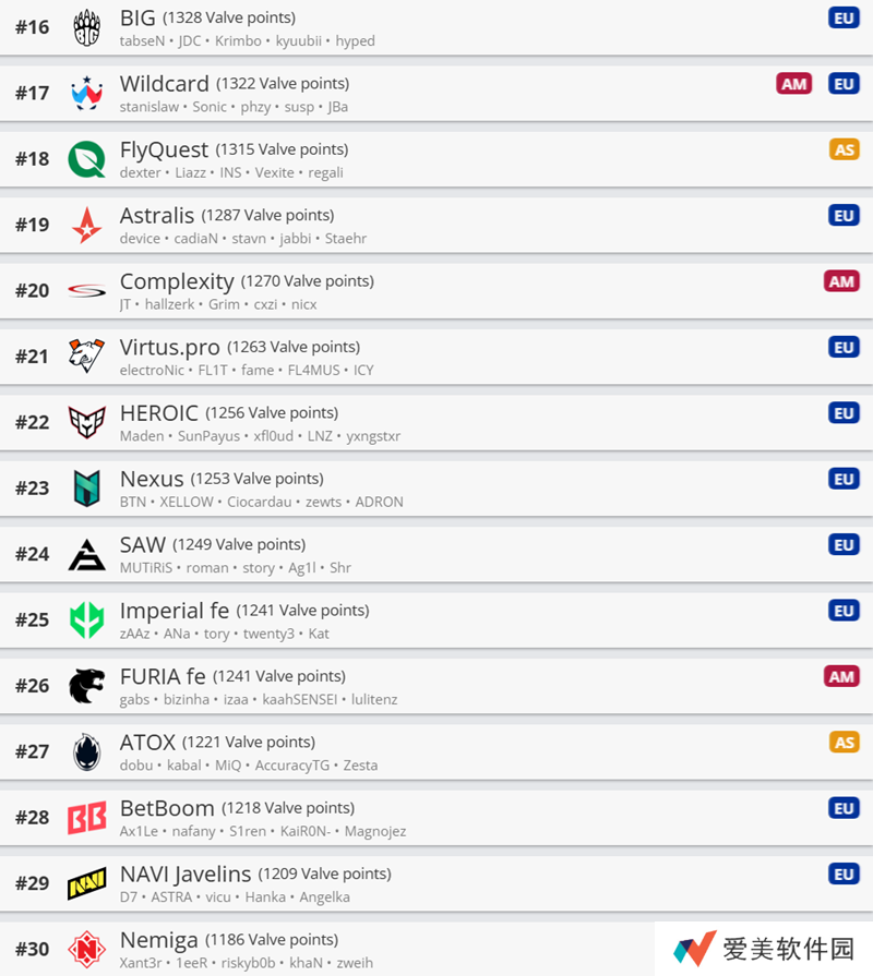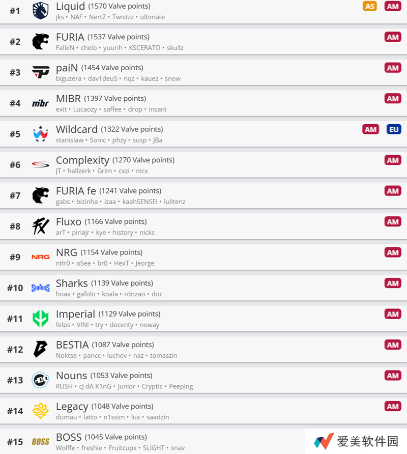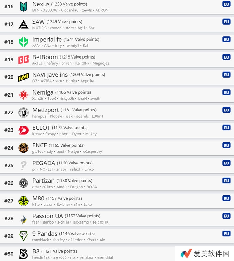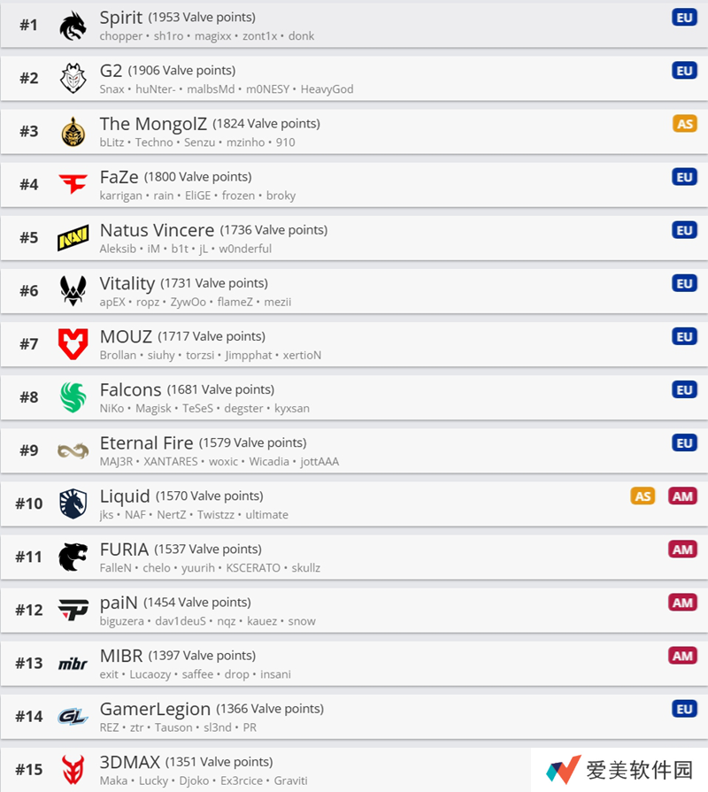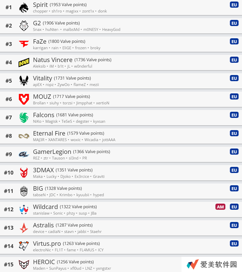 Eternal Fire战队凭借在BLAST 赏金赛S1的出色表现,排名从第12来到第9,已经进入了Top10战队的行列。