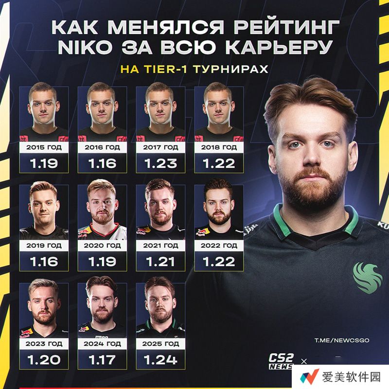 进入2025年以来,NiKo的状态丝毫看不到下降的趋势,他在BLAST赏金赛S1的赛事中稳健输出获得1.09的Rating,IEM卡托维兹的Rating为1.04,接下来的IEM达拉斯预选赛和PGL克卢日-纳波卡赛事迎来了一波爆发,分别获得1.47和1.27的Rating,今年年度Rating来到1.24。