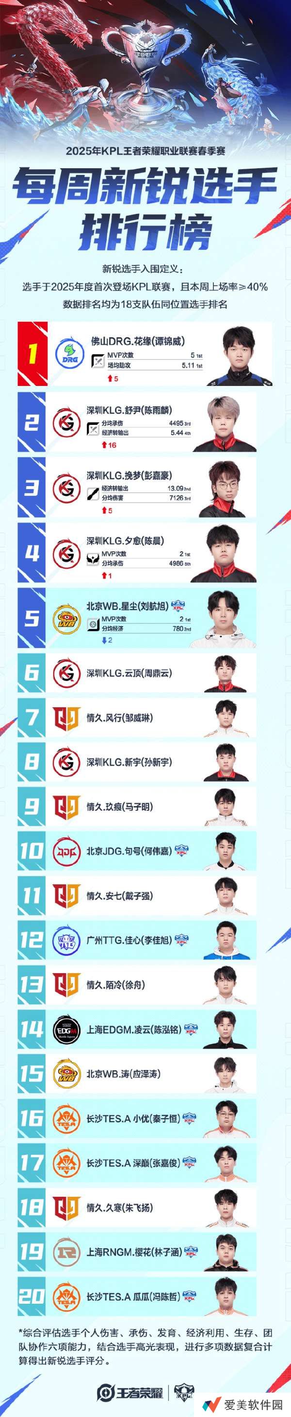 2025KPL春季赛 【每周新锐选手排行榜】第二周榜单公布~