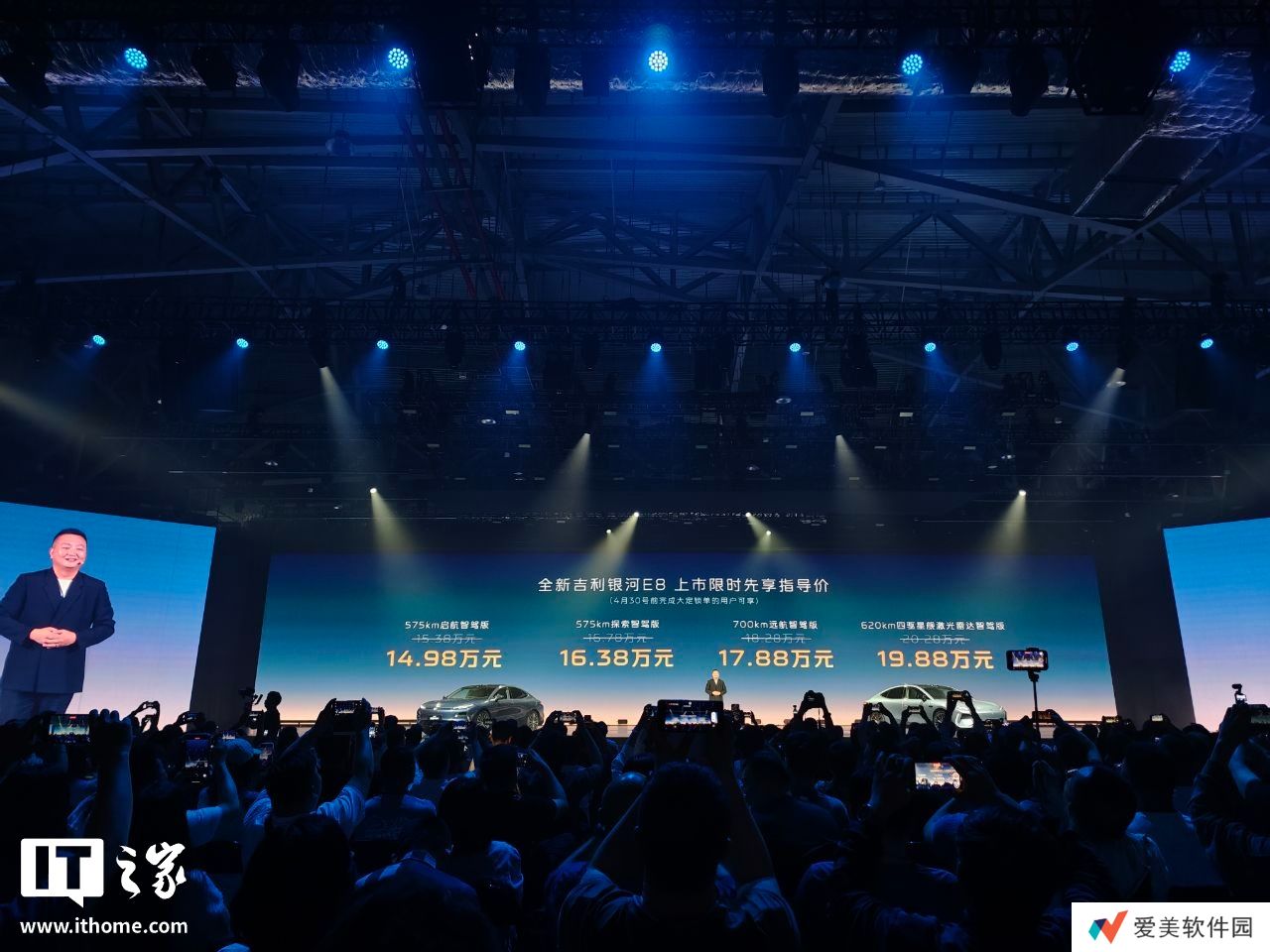 本站 3 月 3 日消息,2025 款吉利银河 E8 正式上市,上市限时先享价区间 14.98-19.88 万元。此次新款车型在配置上进行了显著调整,全系标配“千里浩瀚”高阶智驾功能,相比老款售价区间(16.58 万-22.88 万元)更具性价比。