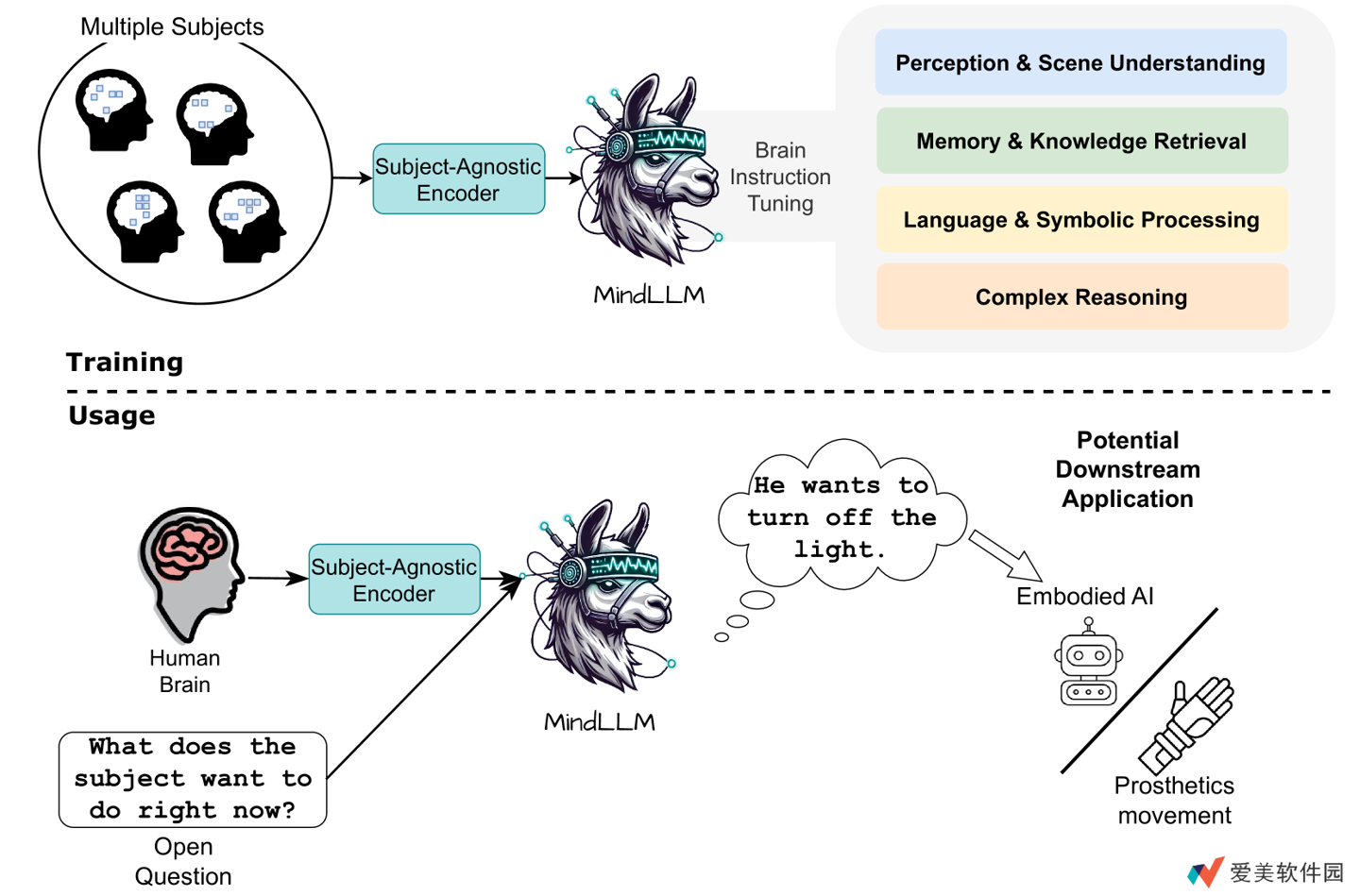 据介绍,MindLLM 由 fMRI 编码器和大型语言模型组成,能够分析 fMRI 扫描中的立体像素(Voxels)来解读脑部活动。其 fMRI 编码器采用了神经科学注意力机制,能够适应不同输入信号的形状,从而实现多种分析任务。
