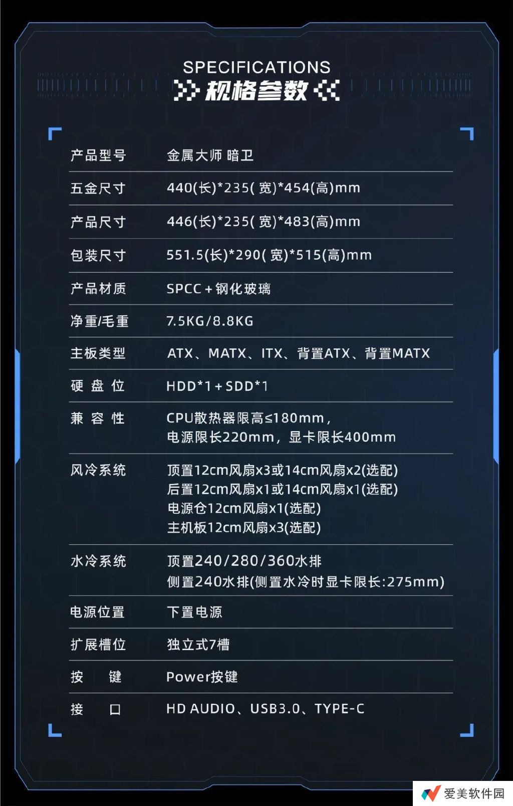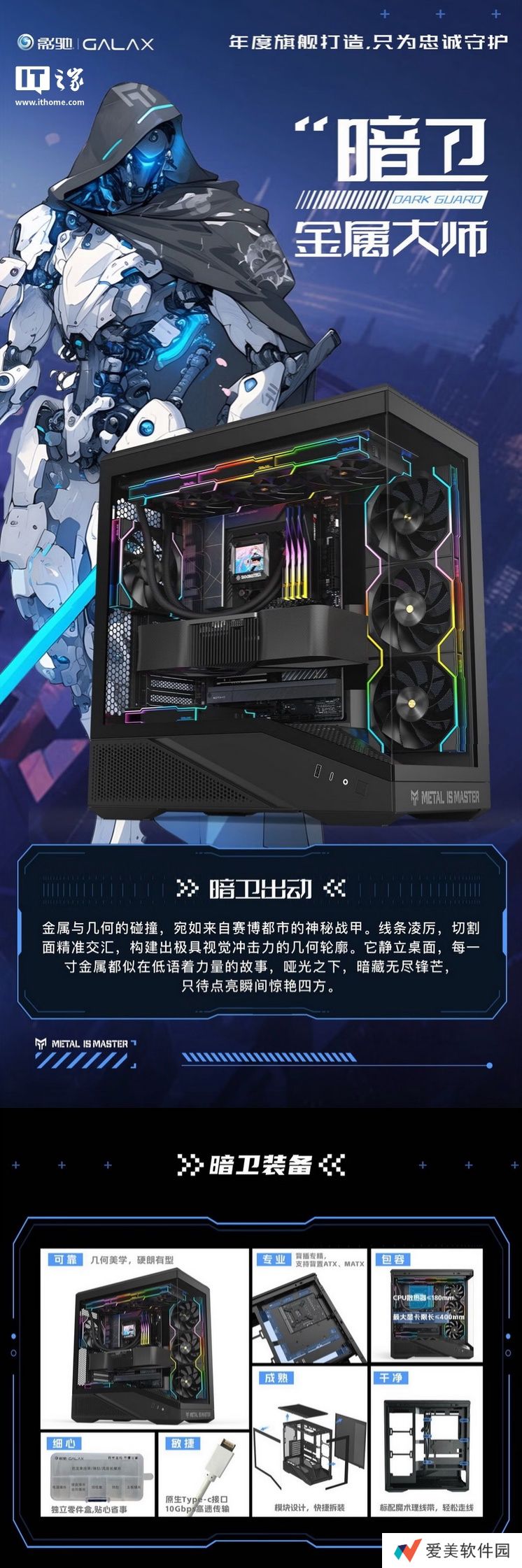 本站3 月 3 日消息,据影驰官方新闻稿,影驰旗下“金属大师暗卫”ATX 机箱现已在京东开启现货销售,这款机箱采用快拆设计,支持 360 水冷,定价为 299 元。
