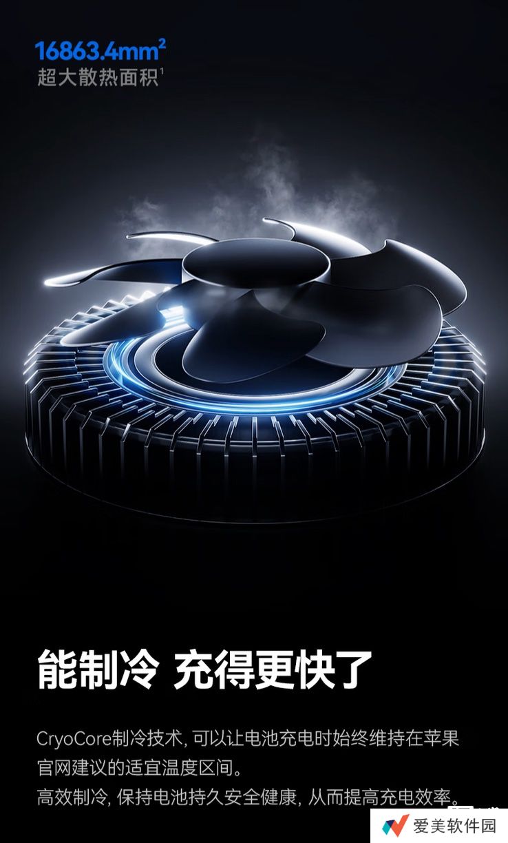 官方称这款充电器配备TEC半导体降温技术,内置主动散热(号称 30 厘米风噪小等于35dB),可以让手机在无线充电时始终维持在官方建议的适宜温度区间。