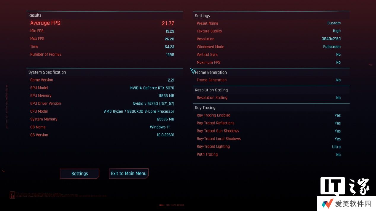 《赛博朋克:2077》作为首批支持 DLSS 4 技术最完善的游戏之一,如果在 4K 分辨率下开启光追,但不开启 DLSS 和帧生成选项,那么: