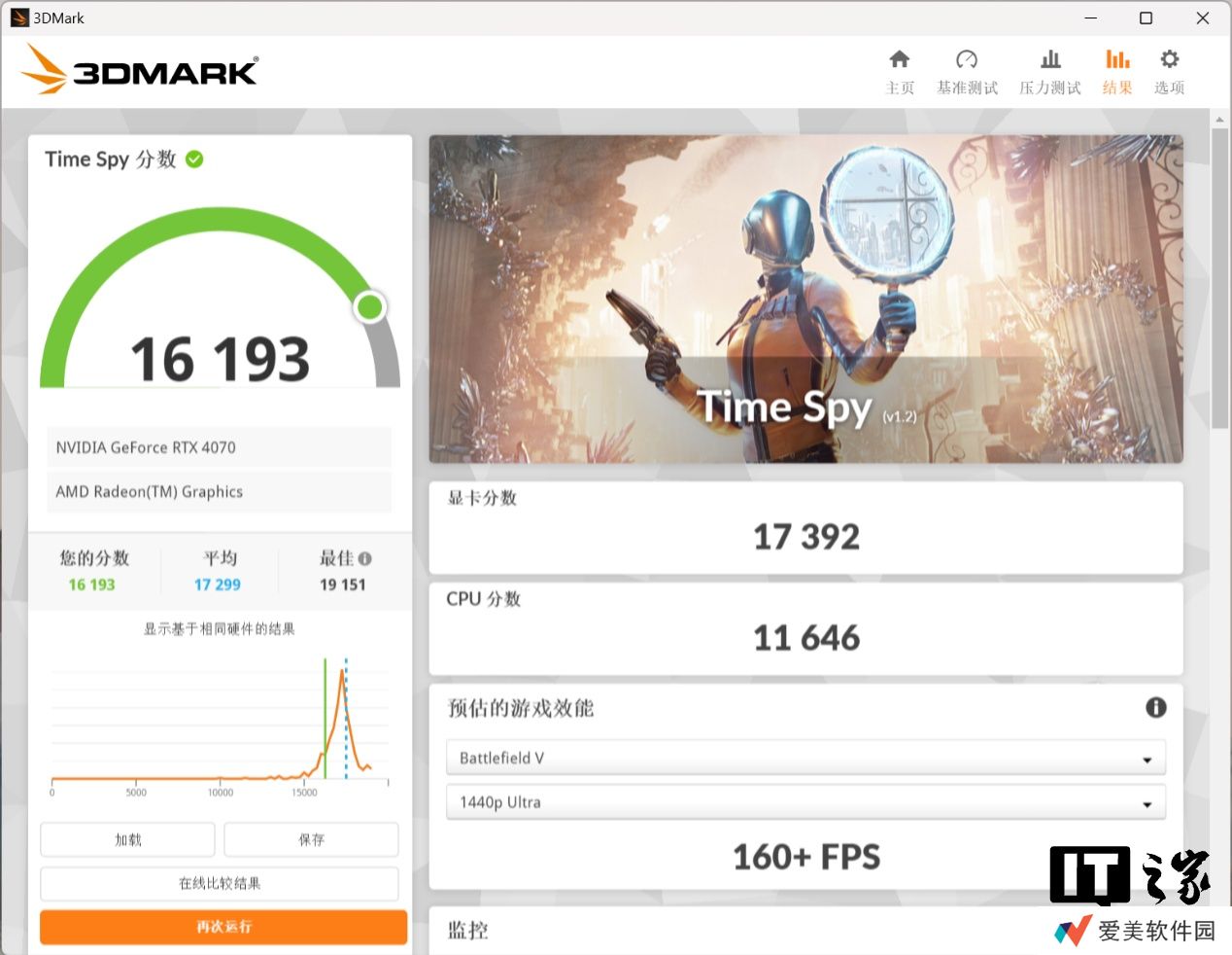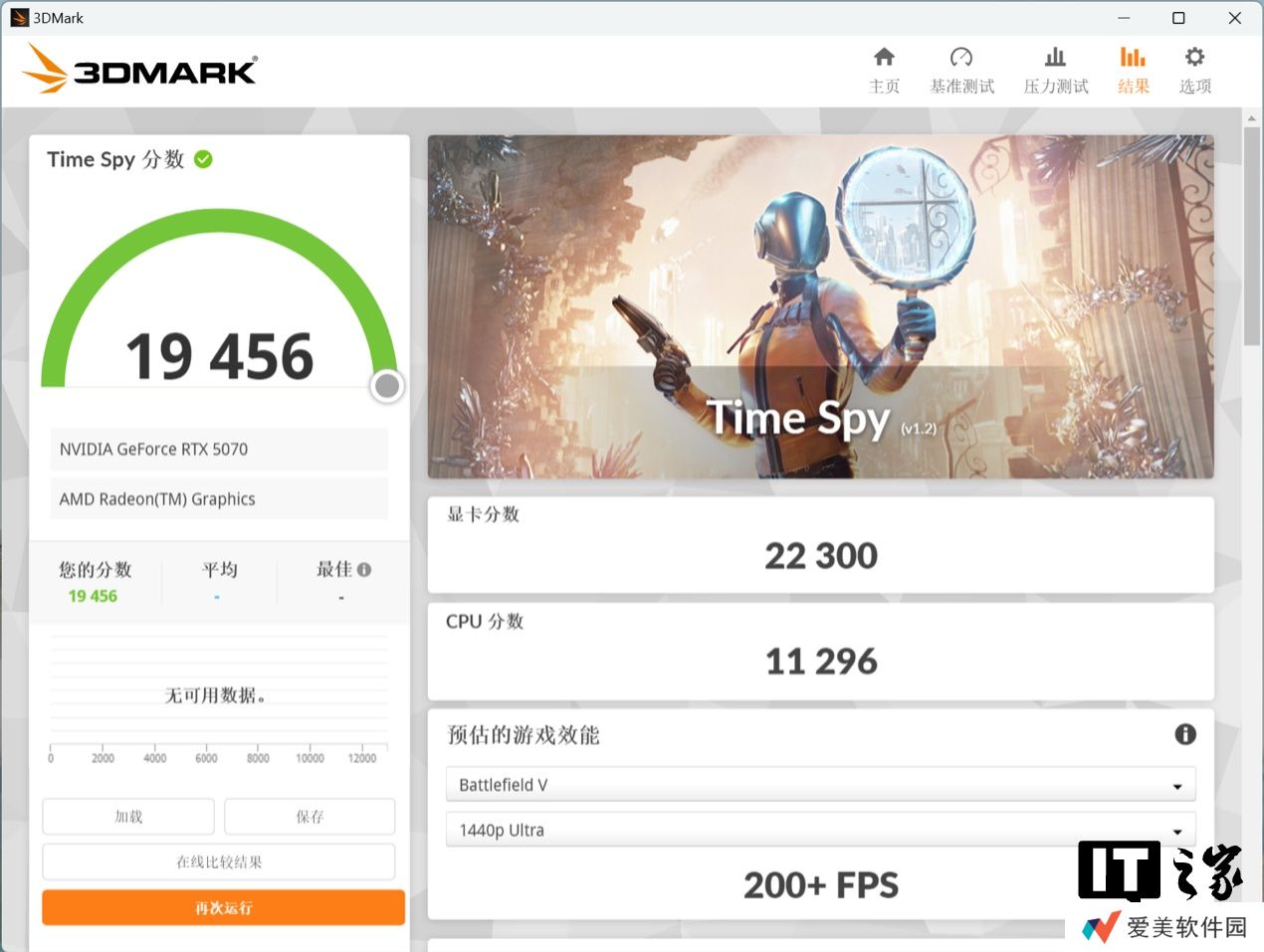 在 3DMark Time Spy DX12 测试中,NVIDIA GeForce RTX 5070 显卡分达到了 22300 分,对比 NVIDIA GeForce RTX 4070 显卡的 17392 分,提升幅度约 28.2%。