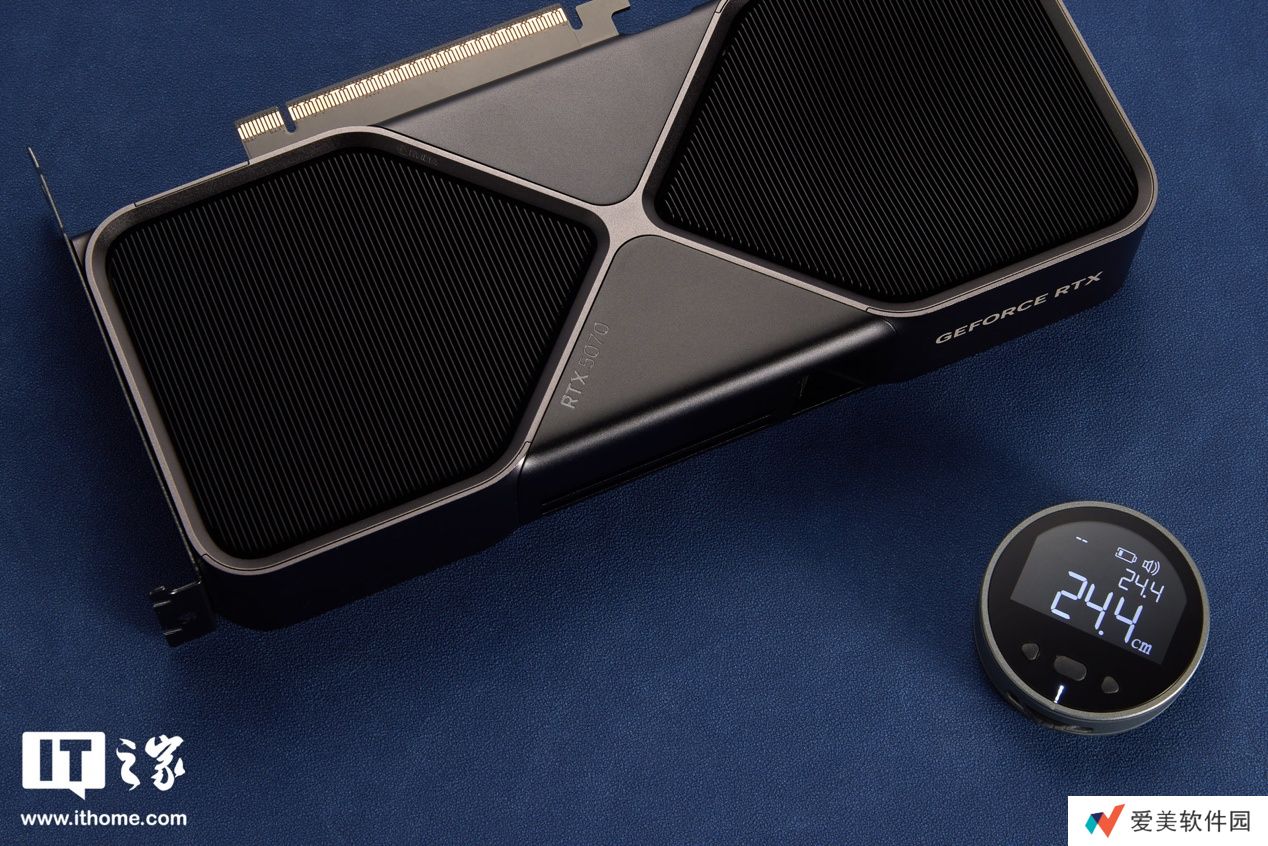 显卡尺寸方面经过本站实测,三围分别是 244*98*40mm(不含挡片),上秤重量为 1.1kg。NVIDIA GeForce RTX 4070 公版卡(1.008kg)重量基本保持一致,尺寸则更小巧一些。