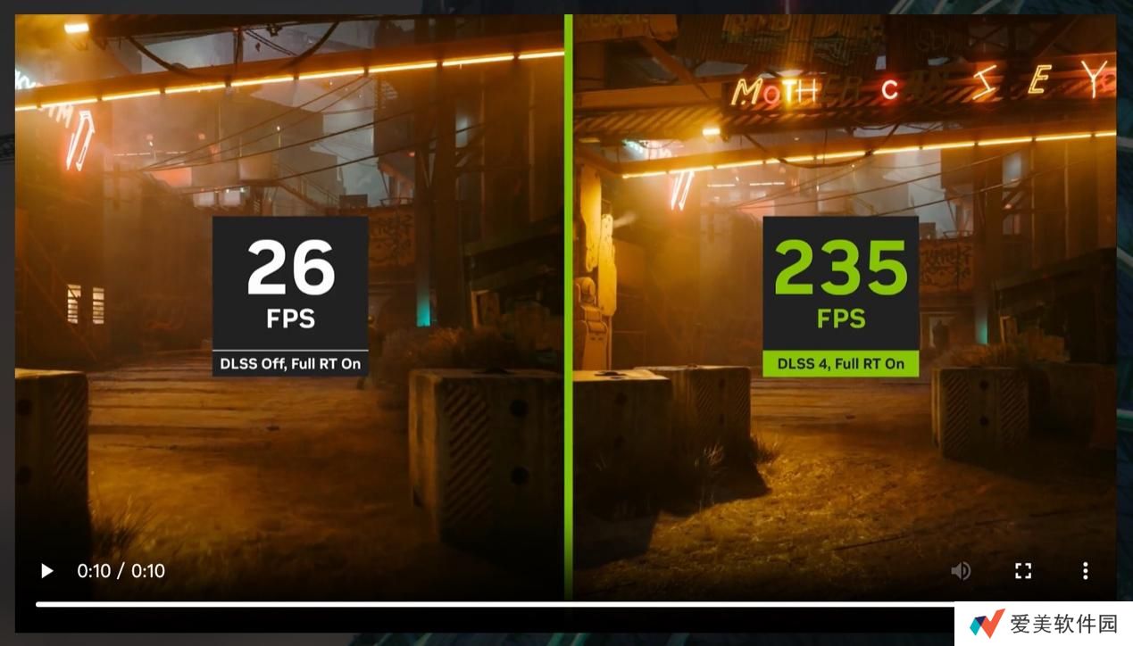 DLSS 4 配合全套 DLSS 技术,包括光线重建、超分辨率以及 DLAA 等功能,最多可实现传统图像渲染的 8 倍帧率。