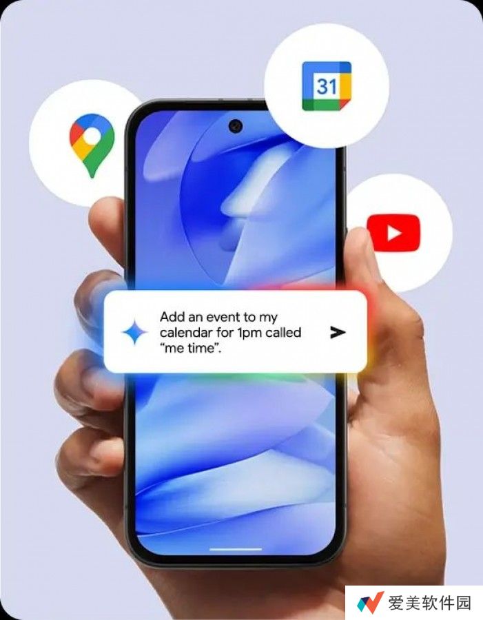 其余图片则展示了 Pixel 9a 与谷歌 Gemini 的深度整合,其中一张截图显示,该机能够无缝连接 Google Maps、Google Calendar 和 YouTube 等应用。此外,还能看到新增的防盗保护功能,适用于 Android 10 及以上系统。