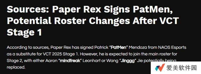 外媒爆料PRX招入次级新人PatMen,第一赛段将作为替补,但预期第二赛段会成为主力,爆料顶替的会是Mindfreak或者Jinggg,原文大意如下: