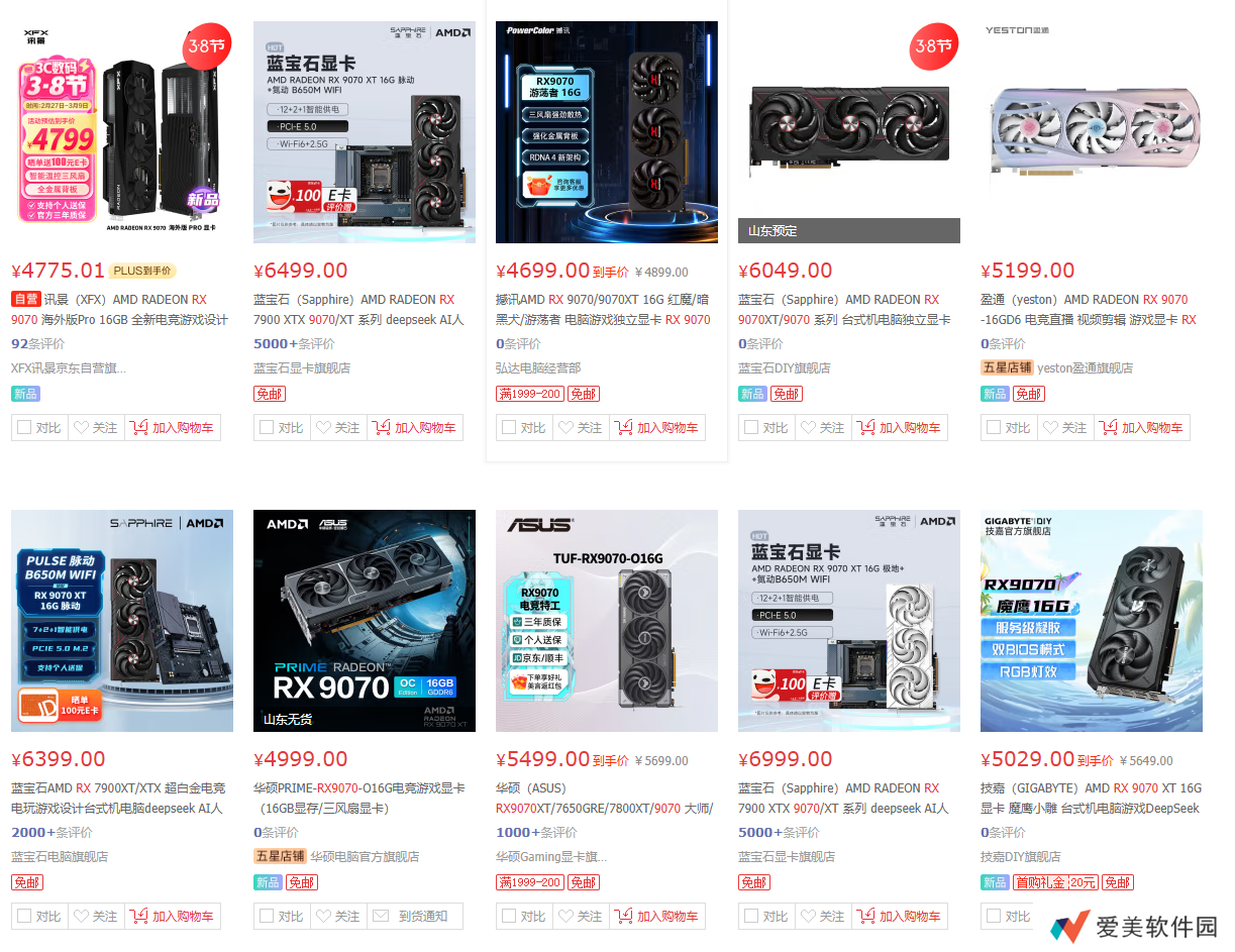本站注意到,目前 RX 9070 系列已经普遍涨价或缺货,例如目前还有货的讯景 RX 9070 海外版在京东自营店定价 4799 元,且京东搜索结果中已经看不到 4499 元的 RX 9070 和 4999 元 RX 9070 XT。