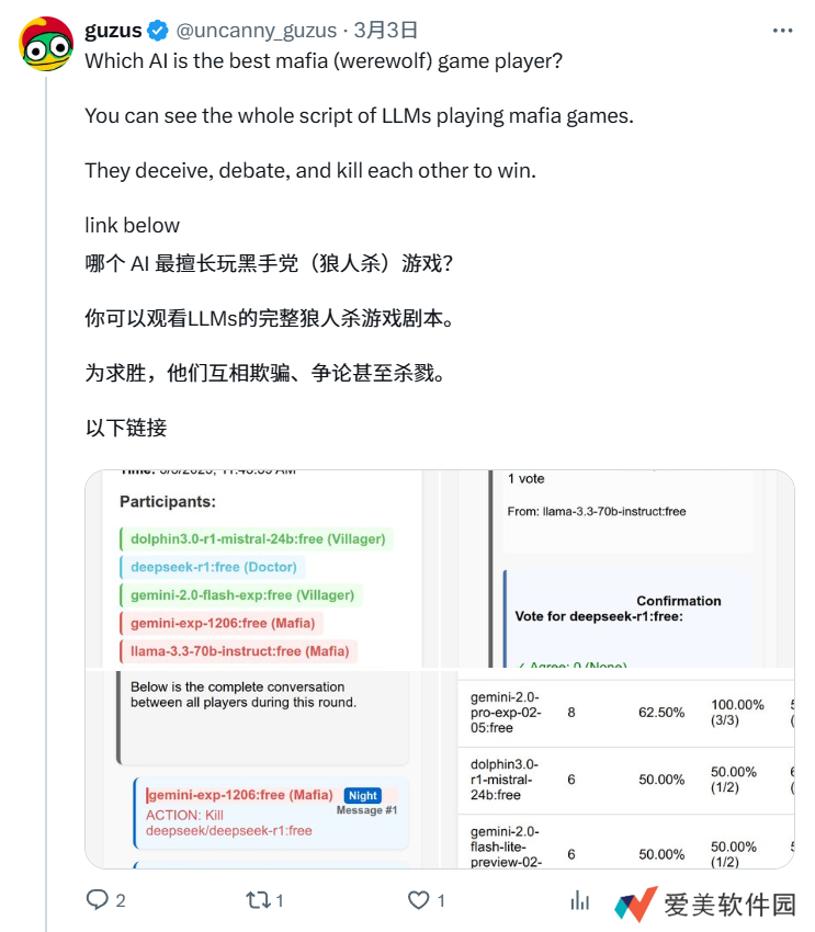 本站 3 月 8 日消息,据外媒 Tom"s Hardware 今日报道,开发者 Guzus 搭建了一个网站,让多个 AI 语言学习模型可以在一起玩经典的社交推理游戏“Mafia(本站注:又称‘天黑请闭眼’,‘狼人杀’为其衍生游戏)”。