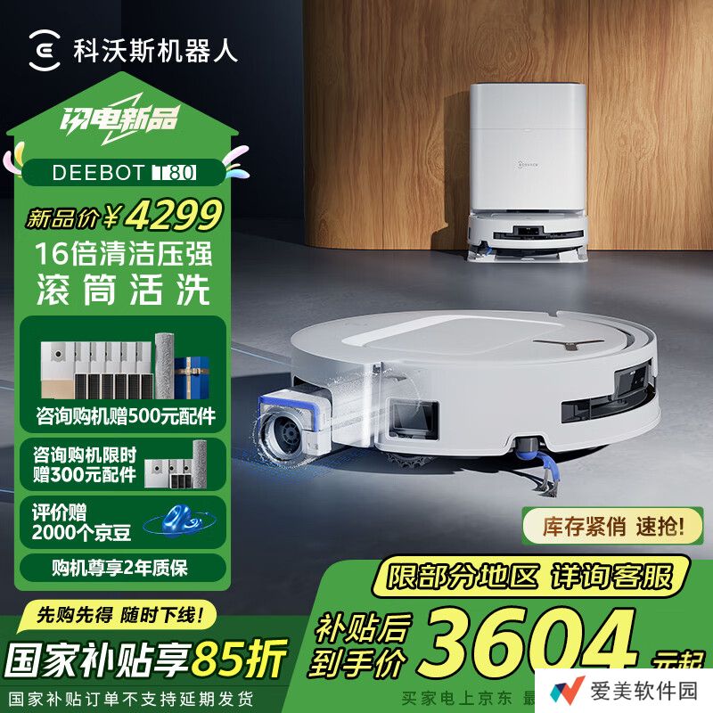 京东科沃斯 T80 扫地机器人 恒压滚筒活洗 扫拖一体 自动清洗 水箱版 DEX68 国补后 3604 元直达链接