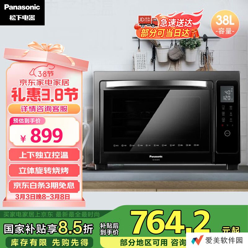 京东松下 家用电烤箱 电子温控 多功能烤箱 上下独立温控 自动预热 38L 容量国补后 764.2 元直达链接