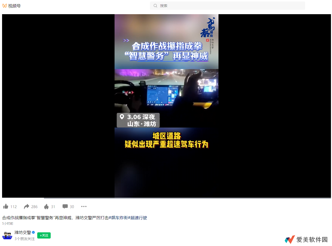 3 月 7 日下午,潍坊市公安局交警支队接到网友举报称,3 月 6 日深夜在城区道路疑似出现严重超速驾车行为。