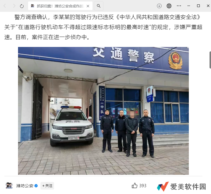 本站 3 月 8 日消息,今日,山东潍坊公安通报了一起在公共道路驾驶车辆严重超速案件。