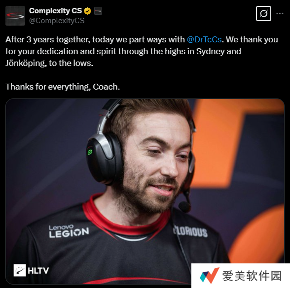 Complexity正式官宣与主教练T.c分道扬镳。