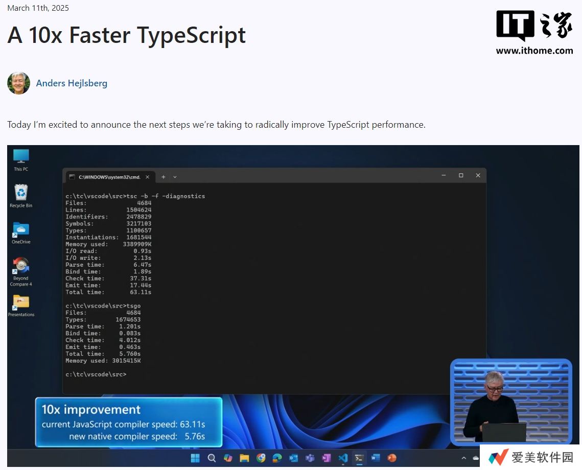 本站 3 月 11 日消息,微软官方开发者博客今日发文,宣布将彻底提高 TypeScript 的性能。