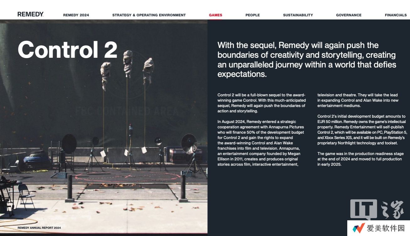 在年报中,Remedy Entertainment 确认了《控制 2》已经全面进入开发工作阶段,同时该公司还确认了预计开发周期将在 15-26 个月之间,团队规模可能由 75 人扩充至 200 人。