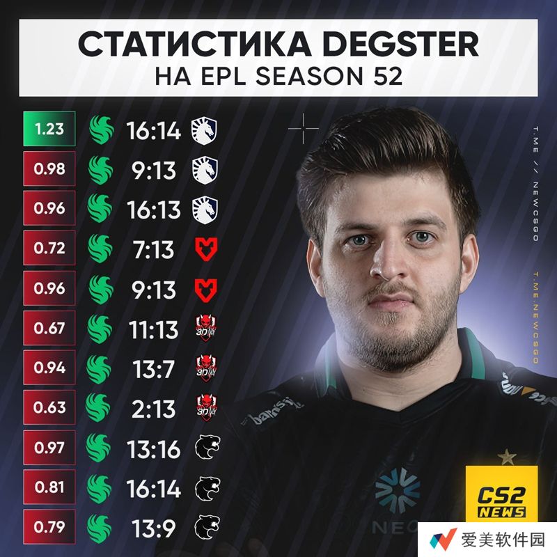 Liquid的图一中获得了1.26的Rating,之后便高开低走。目前他的赛事Rating为0.88,这一数据排在了所有选手里面的并列倒数第十,这显然低于他平时的水准。作为一名狙击手,degster的发挥对队伍的整体表现至关重要,他的低迷也让队伍陷入了2-2小组当中。