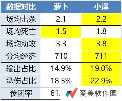 小泽可以说是上海EDG.M的晴雨表,颇有当年杭州LGD.NBW“小落不C下一把”那味儿。打到目前为止,小泽的参团率高达72.3%,比自家发育路凌云高了整整8.3个百分点,分均经济在对抗路仅次于苏州KSG的轻语,标准的边核。