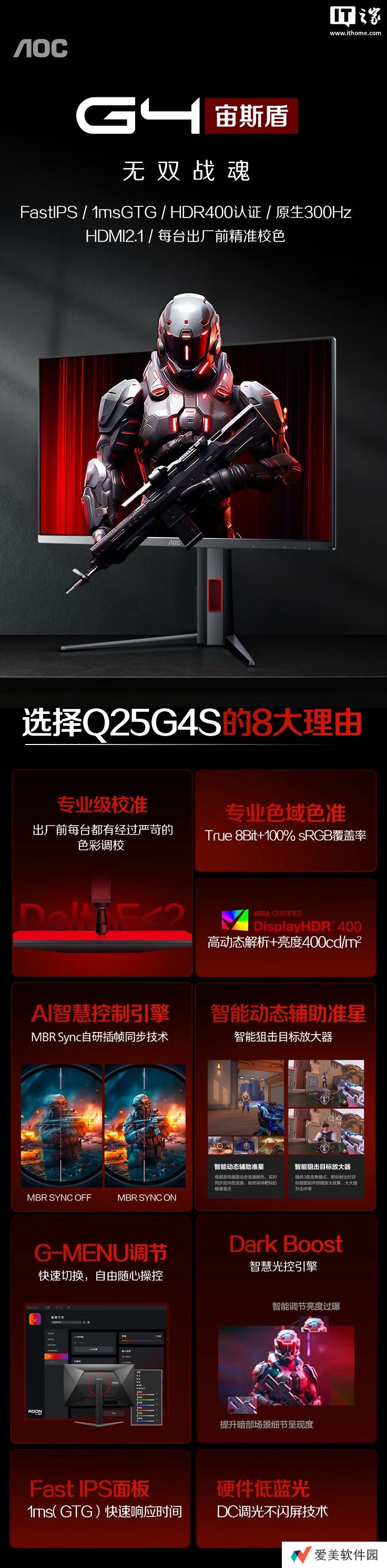 本站 3 月 16 日消息,AOC现已在京东上架一款型号为“Q25G4S”的24.5英寸2K 300Hz 显示器,相比之前的“25G4S”主要分辨率提升至 2K,定价为1599元。