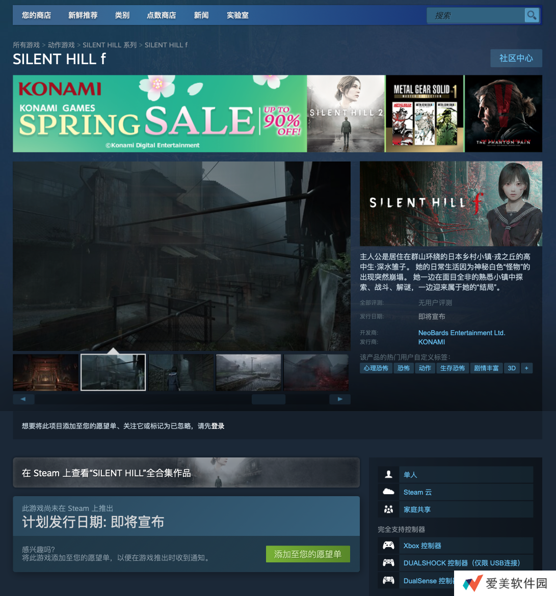 本站 3 月 19 日消息,科乐美今天在 Steam 商店页面更新了《寂静岭 f》的配置要求。