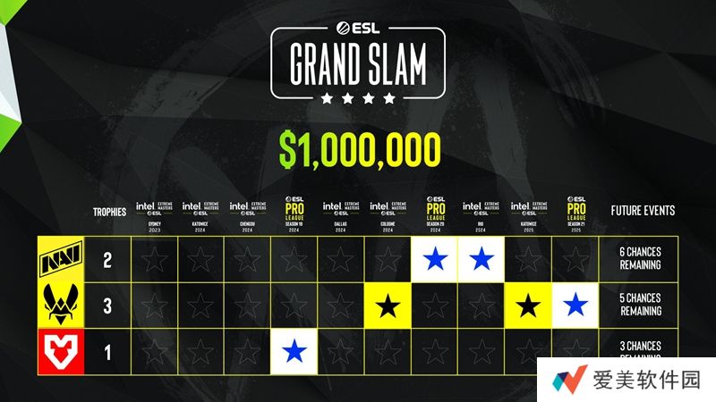 不过值得一提的是,关于英特尔大满贯还有一条鲜为人知的规则。当积分榜中出现一支三冠战队,那么只要这支队伍在之后的英特尔大满贯赛事中打入决赛,每一支将三冠战队在决赛中击败的队伍都可以获得10万美元的悬赏奖金,该奖金可无限次支付。