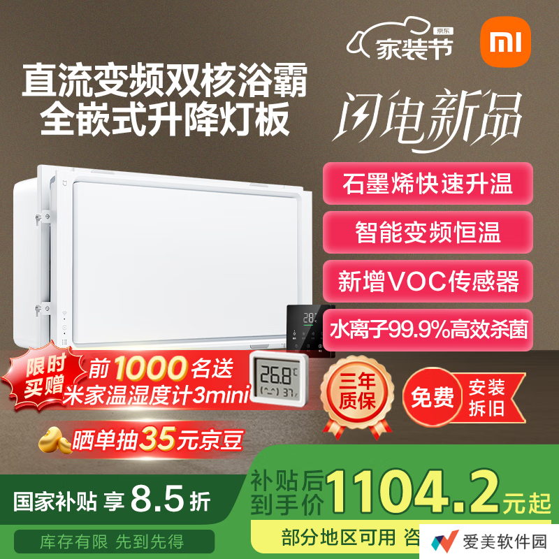 京东小米米家智能浴霸 P1 国补价 1104.2 元起直达链接