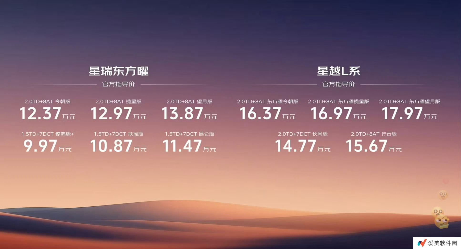 本站 3 月 20 日消息,吉利今晚推出了星瑞的两款新车型 —— 星瑞东方曜・今朝版,售价为 12.37 万元;惊鸿版 +,售价为 9.97 万元。