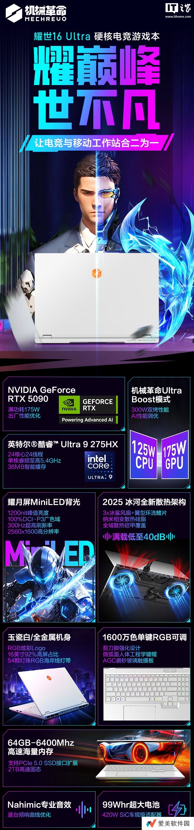 本站 3 月 21 日消息,机械革命宣布将于 3 月 31 日举行耀世新品发布会,预计将推出耀世16 Ultra 旗舰游戏本,该笔记本顶配搭载英特尔酷睿Ultra 9 275HX处理器和英伟达GeForce RTX 5090笔记本电脑GPU,支持外接水冷散热系统,但价格信息尚未公布。